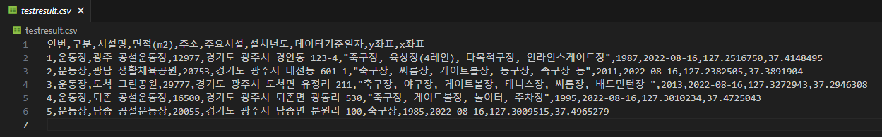 - python pandas, csv 라이브러리를 이용해 csv에 있는 주소 정보를 x,y좌표로 변환하여 저장