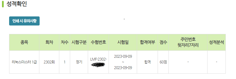 리눅스마스터가 다른 시험 대비 의의신청을 잘 들어줘서 그런 것 같은데 점수가 애매하게 걸쳐있다면 꼭 의의신청을 해보길 바란다.